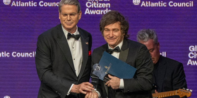 O presidente da Argentina, Javier Milei, foi homenageado pelo think tank americano Atlantic Council com o Prêmio Cidadão Global de 2025, entregue em Nova York na quarta-feira (24).