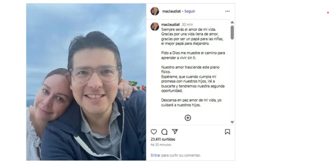 A confirmação do falecimento foi feita por sua esposa, María Claudia Tarazona, que publicou uma mensagem de despedida nas redes sociais: “Você sempre será o amor da minha vida. Obrigada por uma vida cheia de amor, obrigada por ser um pai para as meninas, o melhor pai para Alejandro. Peço a Deus que me mostre o caminho para aprender a viver sem você. Nosso amor transcende este plano físico. Espere por mim, que quando cumprir minha promessa com nossos filhos, irei te buscar e teremos nossa segunda oportunidade. Descanse em paz, amor da minha vida, eu cuidarei dos nossos filhos.”