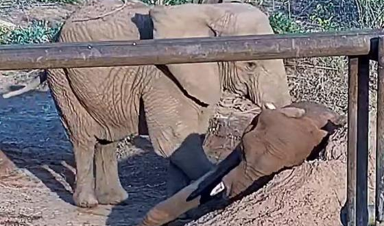 No último registro da do animal vivo, é possível ver a elefanta Kenya ao lado dela, de modo protetivo.