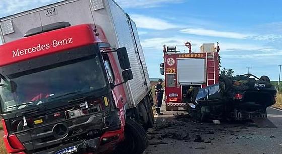 Um homem, ainda não identificado, morreu na manhã dessa segunda-feira (6) após um grave acidente envolvendo um carro de passeio, uma carreta e um caminhão baú na BR-070, em Primavera do Leste (234 km de Cuiabá), em Mato Grosso.