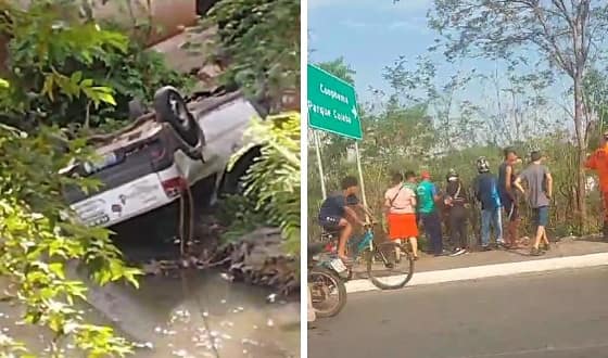O motorista teria perdido o controle da direção e caído na “ribanceira” da cabeceira do rio. Dois motociclistas quase foram atingidos.
