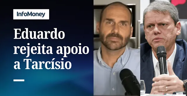 Na quinta-feira (27), em entrevista ao Uol, Eduardo admitiu apoio ao republicano em uma eventual disputa contra Lula (PT) à presidência nas eleições do ano seguinte. Nesta sexta, o deputado federal esclareceu que, embora vote em qualquer adversário do petista, não considera o nome de Tarcísio como positivo para a direita. A publicação foi feita junto de um print da reportagem que destaca a entrevista de quinta, com o título de “Eduardo Bolsonaro admite apoio a Tarcísio como ‘voto anti-Lula’.