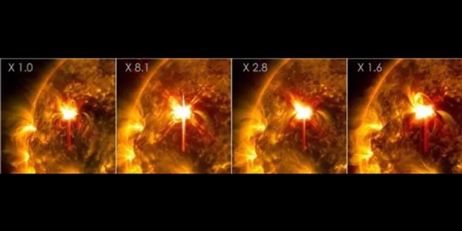As erupções solares observadas nos últimos dias foram classificadas com diferentes graus de intensidade e força: o primeiro clarão foi de X1.0; o segundo de X8.1; o terceiro de X2.8; o quarto clarão de X1.6; enquanto a quinta foi classificada como uma erupção de X1.5.