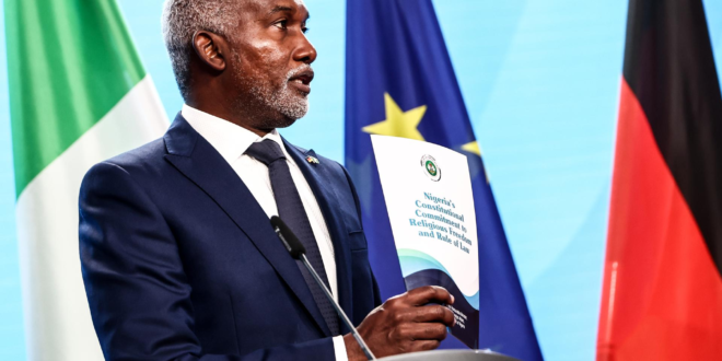 O ministro das Relações Exteriores da Nigéria, Yusuf Tuggar, afirmou nesta terça-feira (4) que é “impossível” existir perseguição religiosa a cristãos em seu país. A declaração foi feita em Berlim, ao lado de seu homólogo alemão, Johann Wadephul, durante uma visita oficial.