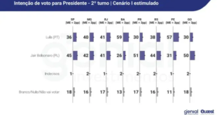 O ex-presidente Jair Bolsonaro (PL) e seu provável substituto Tarcísio de Freitas (Republicanos-SP) venceriam a tentativa de reeleição do presidente Luiz Inácio Lula da Silva (PT) em cinco estados do país se as eleições de 2026 fossem hoje, de acordo com a nova pesquisa da Quaest divulgada nesta quarta (26). Nos dois cenários estimulados de disputa de segundo turno à …