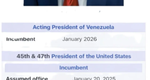 O presidente dos Estados Unidos, Donald Trump, provocou o regime interino da Venezuela, ao postar no fim de semana uma imagem se dizendo “presidente interino” do país caribenho. Trump colocou na rede Truth Social um suposto recorte da enciclopédia online Wikipedia, na qual o artigo sobre ele o descreve como “presidente interino da Venezuela” desde janeiro de 2026 e só …