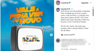 O presidente Luiz Inácio Lula da Silva (PT) publicou neste domingo (28) uma paródia de um programa da Globo para promover ações do governo federal. Usando como referência o tradicional quadro “Vale a Pena Ver de Novo”, da Rede Globo, Lula fez uma retrospectiva. A peça fala de ações da gestão petista com linguagem popular para reforçar a imagem do …