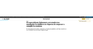 A prisão preventiva do ex-presidente Jair Messias Bolsonaro (PL), ocorrida nesta manhã (22) pela Polícia Federal (PF), após determinação do ministro Alexandre de Moraes, do Supremo Tribunal Federal (STF), ganhou destaque em jornais do mundo todo. Confira as repercussões: The Guardian O periódico inglês The Guardian, que destacou a prisão preventiva nas manchetes de seu site, afirmou que “a polícia …