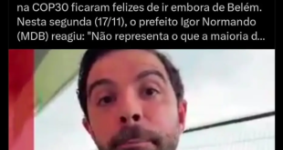O prefeito do Rio de Janeiro, Eduardo Paes (PSD), foi mais uma autoridade a rebater os comentários do chanceler alemão Friedrich Merz após críticas a Belém. E a sua postagem subiu o tom de maneira espetacular, chamando o alemão de “nazista filhote de Hitler”. Paes apagou horas depois sua postagem no X. Mais tarde, após apagar a mensagem, Paes colocou …