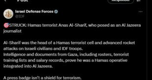 As Forças de Defesa de Israel (FDI) afirmaram neste domingo (10) que o jornalista palestino Anas Al Sharif, que prestava serviços para a emissora Al Jazeera, do Catar, morto em um ataque aéreo em Gaza, chefiava uma célula terrorista do Hamas responsável por lançar foguetes contra civis israelenses e tropas do país. O bombardeio que culminou na morte de Al …
