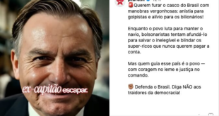 O Partido dos Trabalhadores (PT) lançou na quarta-feira (23) uma nova campanha digital com críticas diretas aos apoiadores do ex-presidente Jair Bolsonaro (PL) e aos bilionários brasileiros. A peça principal mostra o Brasil em uma metáfora de um navio em meio a tempestades. Nesse vídeo, alguns personagens tentam abrir um buraco no casco do navio para salvar o “ex-capitão”, uma …