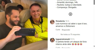Dezenas de passageiros de um voo comercial de Brasília para São Paulo aplaudiram o ex-presidente Jair Bolsonaro e fizeram fila neste sábado (28) para cumprimentar e tirar selfies com ele. As imagens do apoio recebido dentro da aeronave foram publicadas pelo ex-presidente em seu perfil no Instagram com um convite para que o Brasil compareça ao ato na Avenida Paulista …