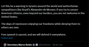 A deputada republicana da Flórida Maria Elvira Salazar manifestou nesta quarta-feira (28) apoio à nova política dos Estados Unidos de restrição de vistos para autoridades estrangeiras acusadas de censurar americanos, citando nominalmente o ministro Alexandre de Moraes, do Supremo Tribunal Federal (STF). No post divulgado em suas redes sociais, Salazar afirmou que apoia “totalmente a decisão do secretário Rubio de …