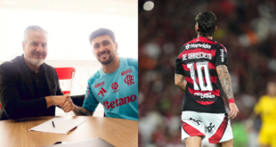 Por que Arrascaeta foi homenageado no Maracanã? O Flamengo anunciou, nesse sábado (08), a renovação de contrato com Arrascaeta. Desse modo, o novo vínculo entre o clube e o ídolo uruguaio vai até 2028, com possibilidade de extensão até 2029. Com isso, o camisa 10 celebrou a marca no gramado do Maracanã. 🖼️🇺🇾 Ao lado da família, De Arrascaeta recebe …