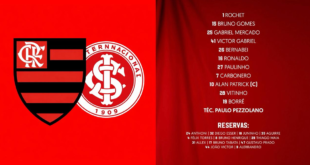 Flamengo x Internacional acontece a partir das 19h (horário de Brasília) desta quarta-feira (04), no Maracanã Flamengo e Internacional se enfrentam pela segunda rodada do Campeonato Brasileiro nesta quarta-feira (04), no Maracanã, a partir das 19h (horário de Brasília). Para o confronto interestadual, o time gaúcho já definiu a escalação. QUAL A ESCALAÇÃO DO INTERNACIONAL? TITULARES: Rochet; Bruno Gomes, Gabriel …