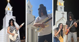 Cuiabanos aproveitam réplica de capela de clipe e entram no clima do rock
