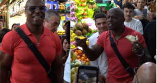 Terry Crews visita Mercadão de SP e experimenta iguarias