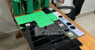 Polícia penal flagra 29 celulares escondidos em frascos de água sanitária