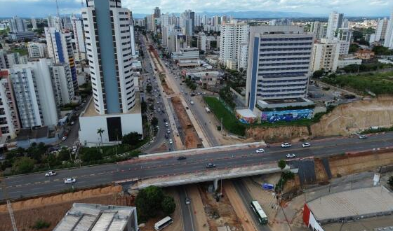 O viaduto da Avenida Miguel Sutil sobre a Avenida do CPA está sendo alargado dos dois lados