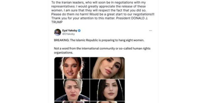 O presidente dos EUA, Donald Trump, disse nesta quarta-feira (22) que o Irã voltou atrás em oito condenações à morte após um pedido feito por ele. Em uma publicação na Truth Social, ele informou que quatro mulheres que seriam executadas nesta noite serão colocadas em liberdade “imediatamente” e outras quatro cumprirão um mês de prisão. “Agradeço imensamente ao Irã e …
