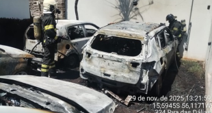 Quatro carros pegam fogo em pátio de empresa no Jardim Cuiabá