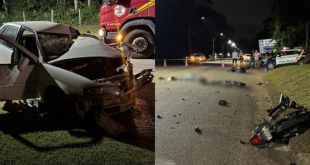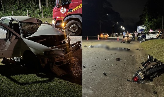 Acidente entre motos e Gol deixa dois mortos e três feridos