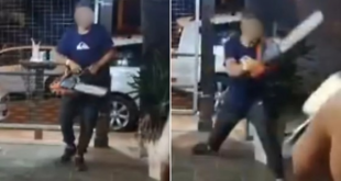 Homem com motosserra invade bar no interior de SP; veja vídeo