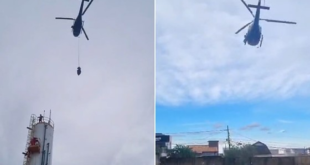 Vídeo mostra resgate que trabalhador que caiu dentro de caixa d’água gigante em Cuiabá