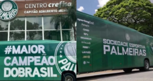 Palmeiras precisou colocar novo adesivo no veículo por ‘culpa’ do Flamengo Nos últimos anos, o ônibus do Palmeiras ostentava a frase “maior campeão do Brasil”. Mas depois de 2025, quando foi vice do Flamengo no Brasileirão e na Libertadores, tudo mudou. Neste início de 2026, os paulistas removeram o texto do transporte. O novo design do ônibus do Palmeiras. A …
