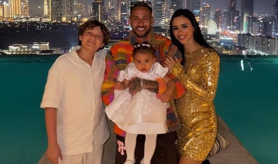 No vídeo publicado, Neymar aparece brincando com Mavie, ninando Helena e até em uma briga de balões de gás com Davi Lucca e Neymar Pai.