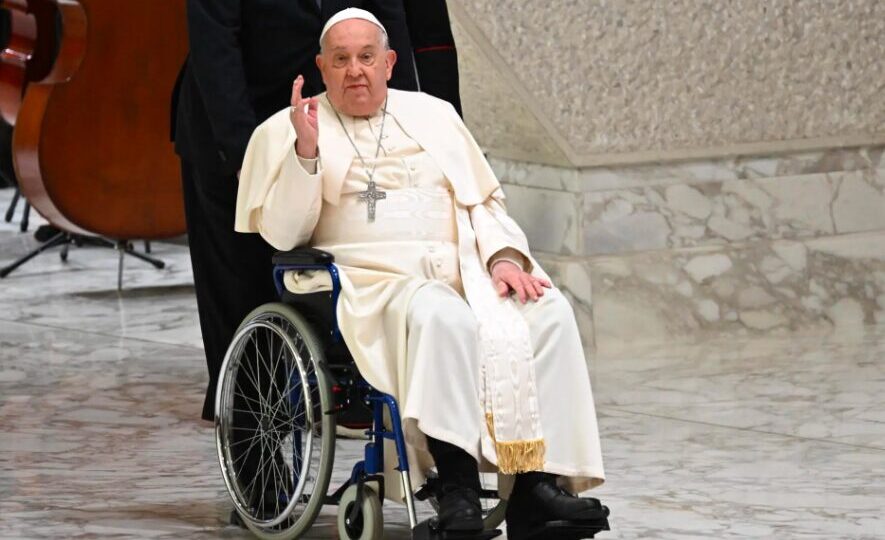 Neste domingo, cerca de 300 crianças se reuniram em frente ao hospital onde o papa está internado para levar um “carinho simbólico” a ele.