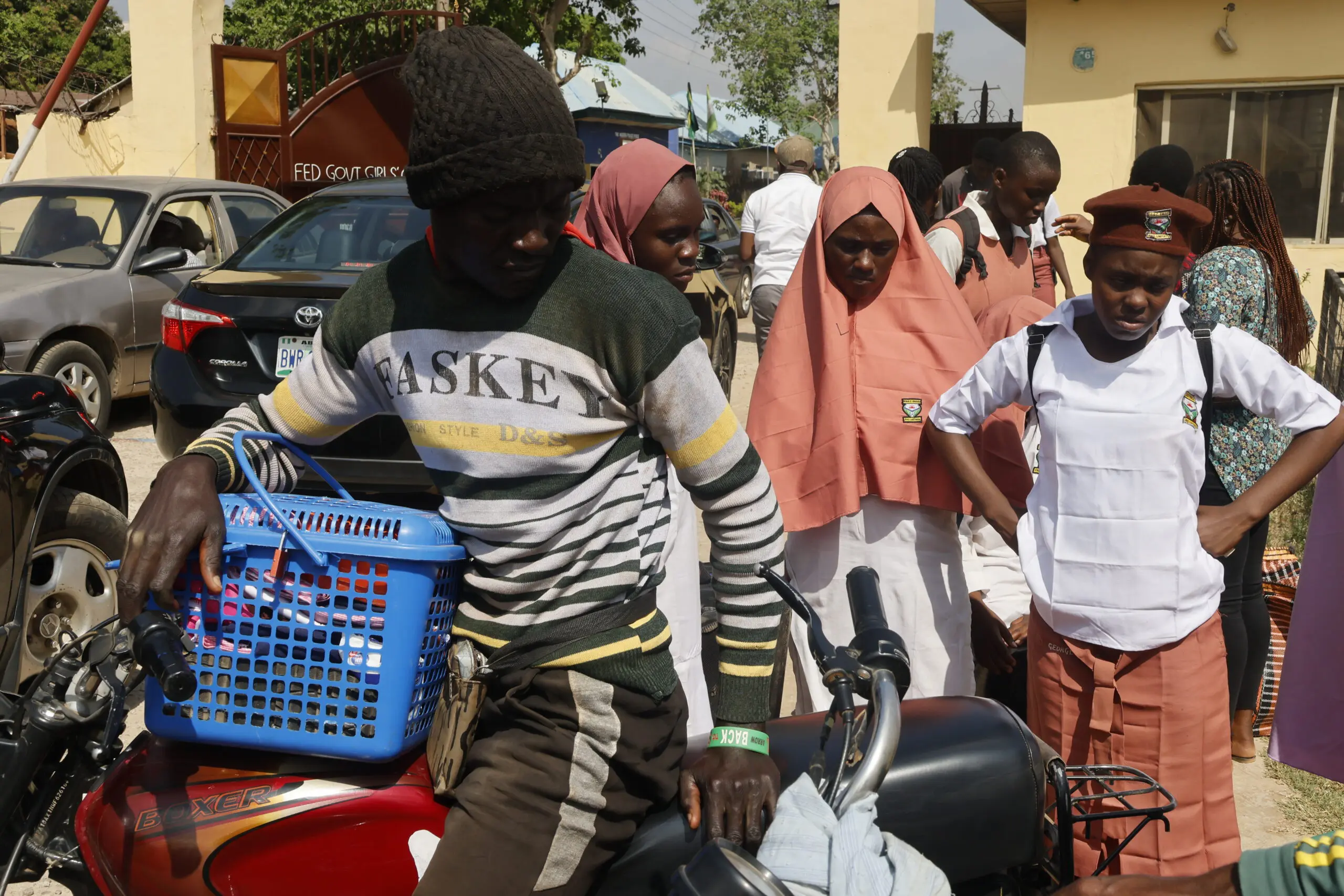 Pais buscam suas filhas no Federal Government Girls’ College, em Bwari, Abuja, Nigéria, em 22 de novembro de 2025. O governo federal da Nigéria ordenou o fechamento temporário de 41 escolas federais de unidade devido ao aumento dos casos de sequestro em todo o país. EFE/EPA/AFOLABI SOTUNDE (Foto: EFE)