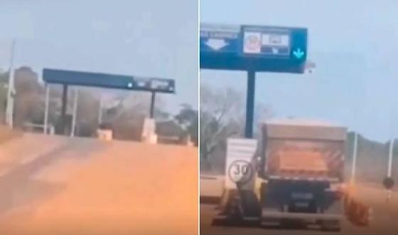 “Pedágio na estrada de chão. Vê se tem cabimento! Tá achando que é mentira? Olha lá o pedágio”, diz o motorista.