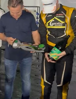 Zambolini se aproximou do governador nos boxes e entregou o troféu como forma de agradecimento e reconhecimento pela realização do autódromo e pelo apoio ao evento. A cena foi registrada por equipes que acompanhavam a etapa.