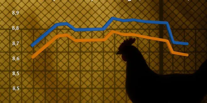 Em relação à ave congelada, a conta é parecida. O maior valor da série história medido pelo CEPEA aconteceu em 15 de abril deste ano: R$ 8,77 por quilo no atacado. No dia 16 deste mês, o preço do frango congelado era de R$ 8,70/quilo.