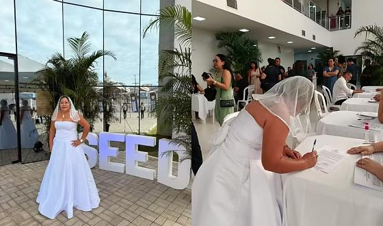 Deixe ela, que é a mãe da educação! Ou, neste caso, a noiva. A pedagoga Nayra Saldanha, de 50 anos, escolheu um look nada básico e foi vestida de noiva, com direito a véu, à cerimônia de posse em um concurso público para professora em Roraima. Aprovada em 2021, ela escolheu o vestido para pagar uma promessa antiga.