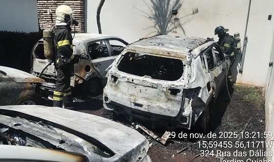 Quatro carros pegaram fogo na tarde de hoje (29) no pátio da empresa Facilita, distribuidora de medicamentos, no bairro Jardim Cuiabá, na capital de Mato Grosso. Dois dos veículos foram consumidos pelas chamas e ficaram completamente destruídos. Outros dois ficaram parcialmente danificados.