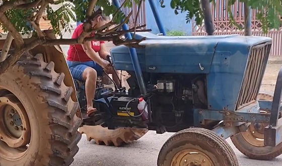 Uma cena inusitada ocorrida em Nobres (a 123 km de Cuiabá) chamou a atenção nas redes sociais. Uma cliente chegou de trator ao salão para não perder o horário marcado na manicure.