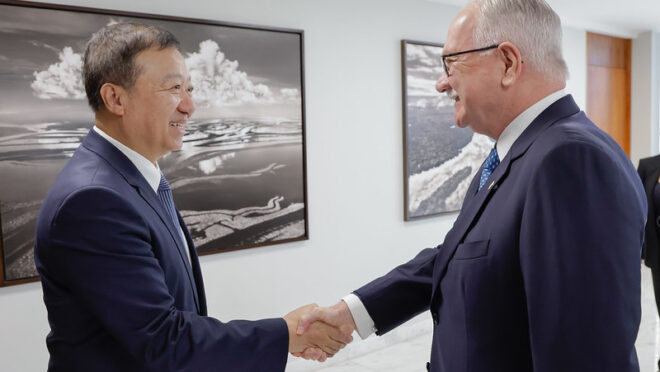 O vice-presidente do STF, Edson Fachin, recebeu uma delegação composta por cinco magistrados do Supremo Tribunal Popular da China