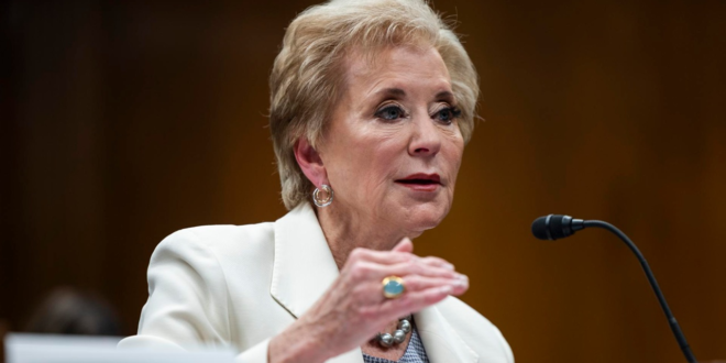 Em março, Trump assinou uma ordem executiva para orientar McMahon a tomar todas as medidas necessárias para facilitar o fechamento do Departamento de Educação e “devolver a autoridade educacional aos estados”.