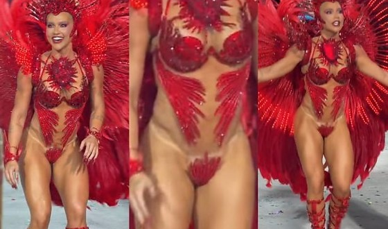 Em determinada altura de seu desfile na Sapucaí, Virginia Fonseca enfrentou uma situação constrangedora com seu tapa-sexo.