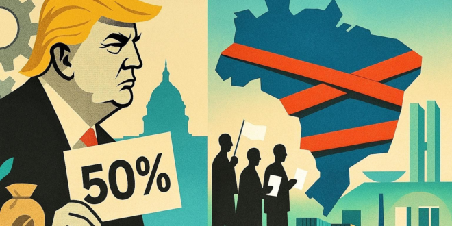 O anúncio de uma tarifa de 50% sobre as exportações brasileiras para os Estados Unidos, a partir de 1º de agosto, por parte do presidente Donald Trump, acendeu um sinal de alerta na diplomacia e na economia do Brasil. Longe de ser um episódio isolado, o tarifaço de Trump revela uma teia complexa de desafios que posicionam o país em uma situação de vulnerabilidade, com poucas e intrincadas saídas.