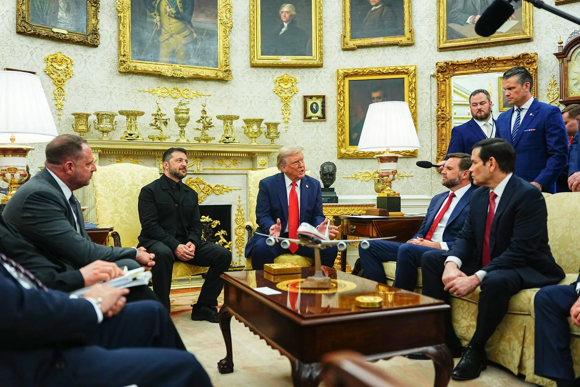 Após ele e Zelensky falarem com jornalistas no Salão Oval da Casa Branca, ele se reuniu com o presidente ucraniano a portas fechadas e ambos conversam agora com líderes europeus e da Otan no Salão Leste da Casa Branca.