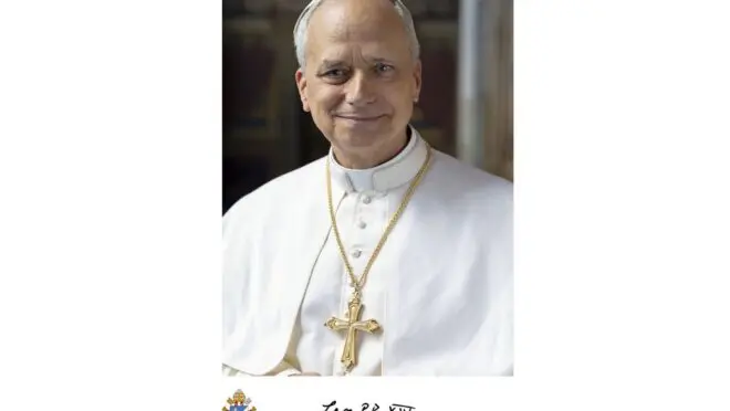Na imagem, o sucessor de Francisco aparece com uma batina branca simples, sem qualquer detalhe, acompanhada de uma cruz de ouro pendurada no pescoço. Além da foto, foram divulgados sua assinatura oficial como papa e seu brasão.