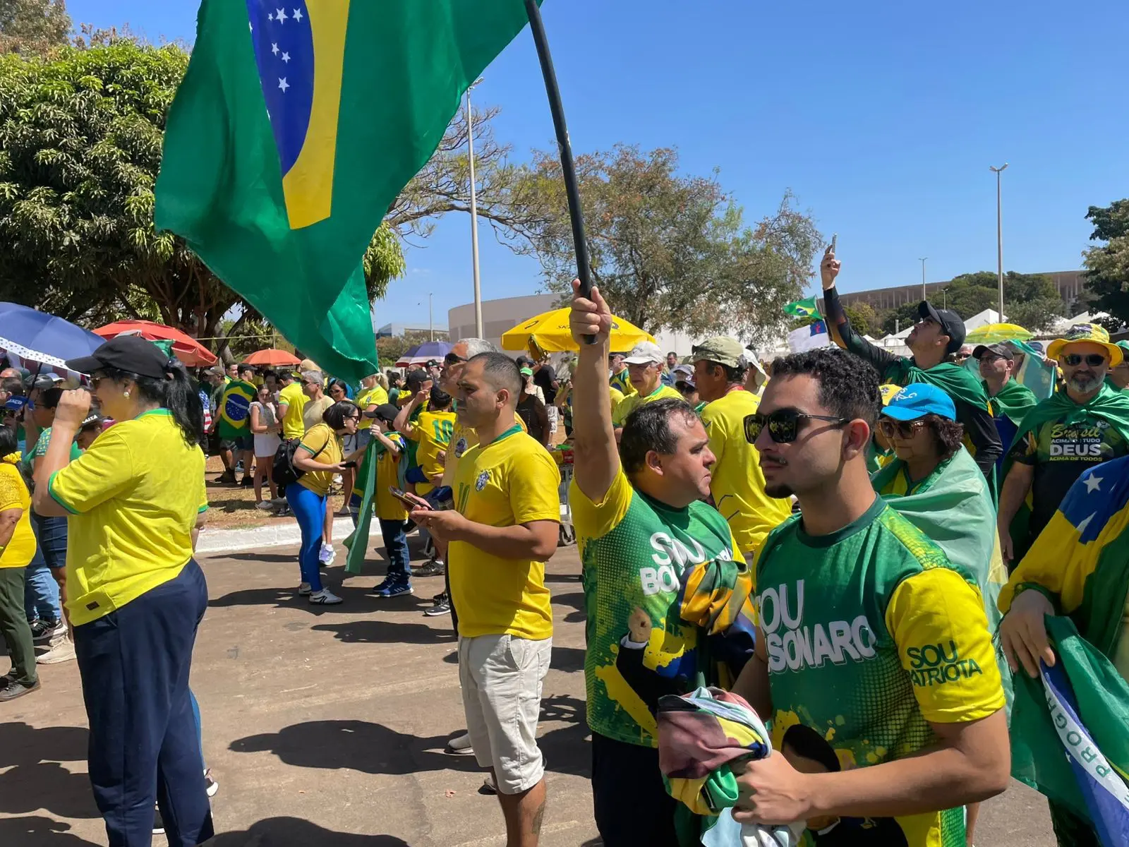 Manifestante em Goiânia acompanha atos do 7 de Setembro. (Foto: Amanda Caixeta/Divulgação/Assessoria deputado Gustavo Gayer)