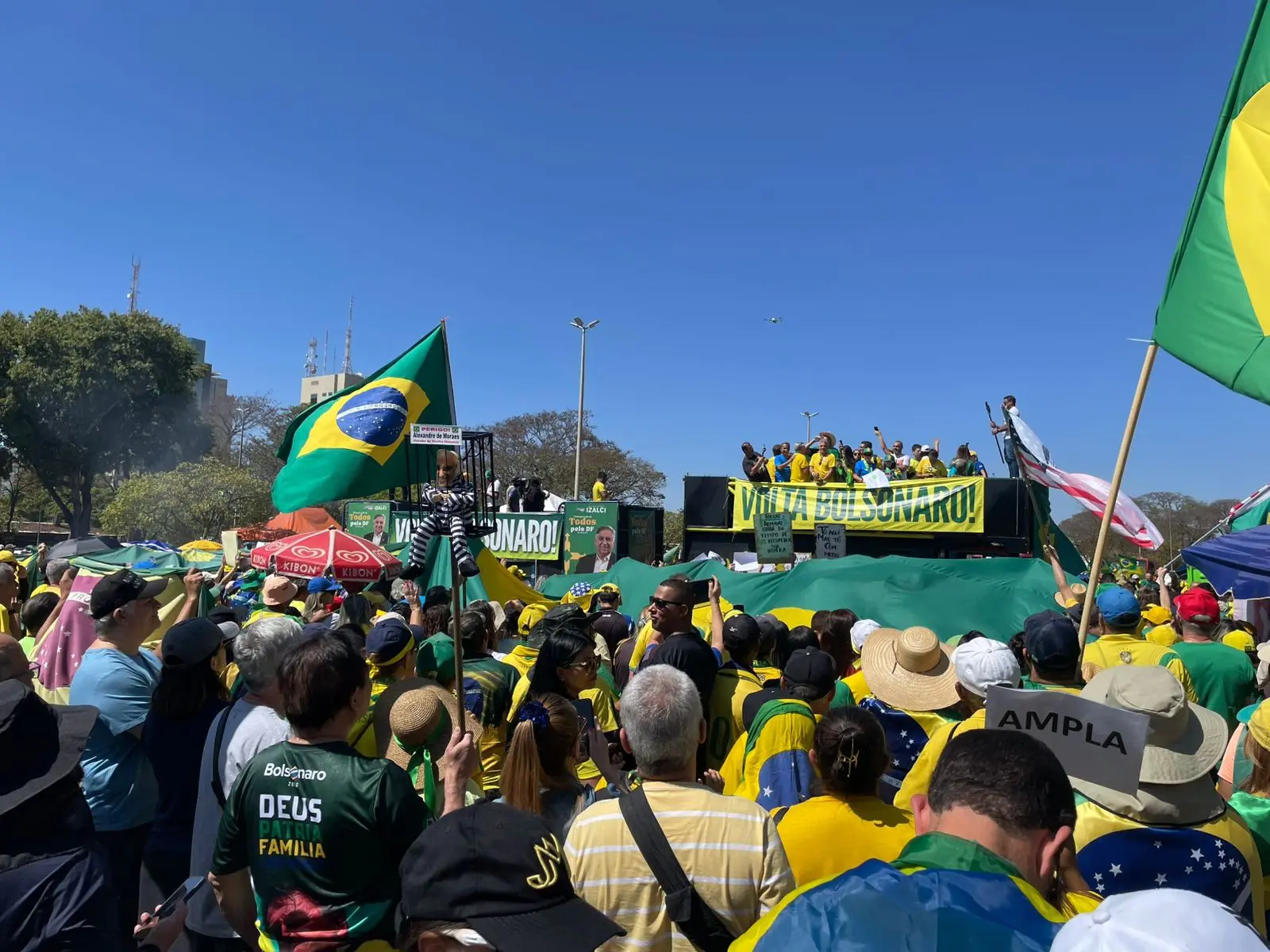 Mobilização pela anistia em Curitiba (PR) teve boneco de Moraes e faixas em apoio a Bolsonaro. (Foto: Valéria Palombo)