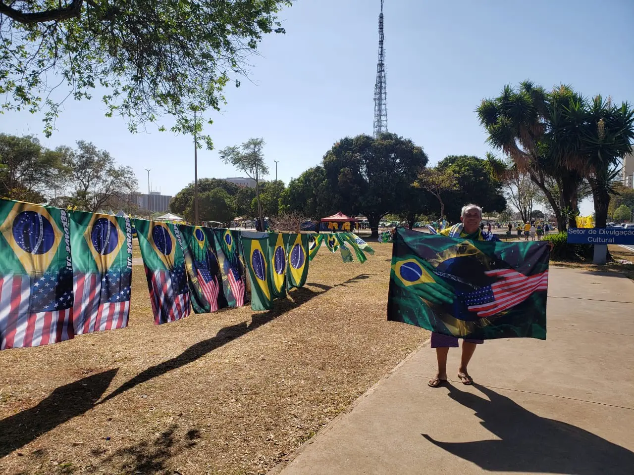 Ambulante vende bandeiras próximo à concentração de manifestantes em Brasília. (Foto: Aline Rechmann/Gazeta do Povo)