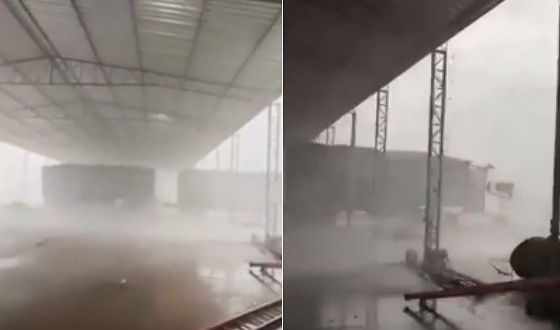 Além da empresa, o vendaval também danificou postos de combustíveis, restaurantes e outras edificações no município. Lonas de caminhões de carga também foram levadas.