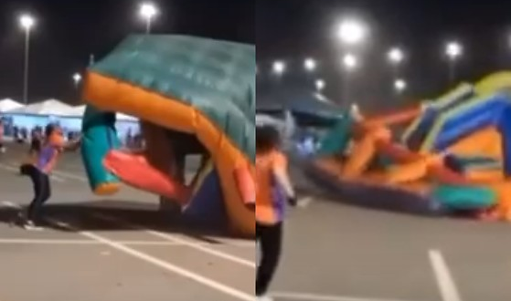 Vídeos que circulam nas redes sociais mostram o momento em que o vento atingiu a estrutura montada para o evento. Enquanto os brinquedos “voavam”, membros da equipe de organização corriam para segurá-los.