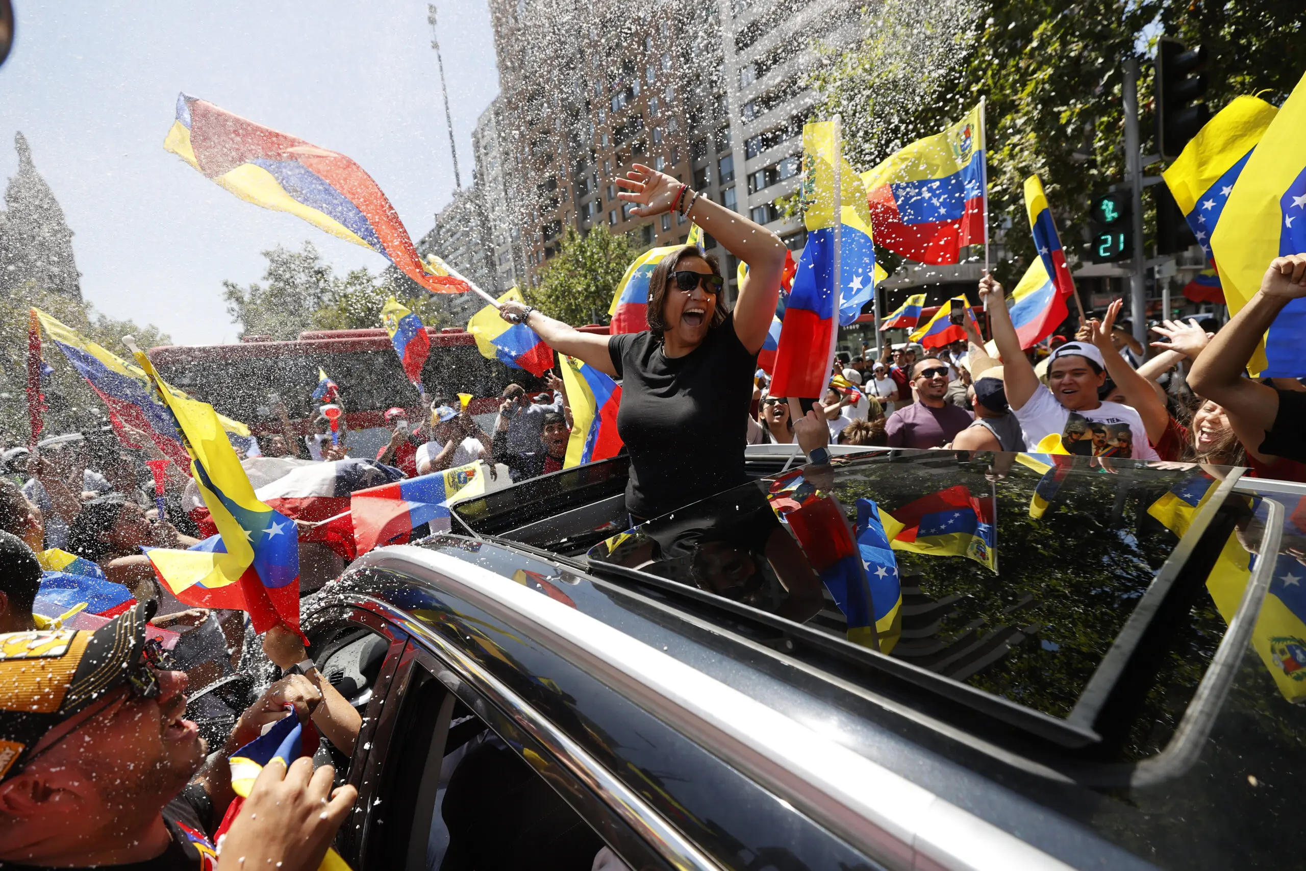 Em diversos pontos do planeta, grupos se reúnem em praças e avenidas para celebrar o que consideram “o fim de um ciclo marcado por autoritarismo, crise econômica e repressão política na Venezuela”.